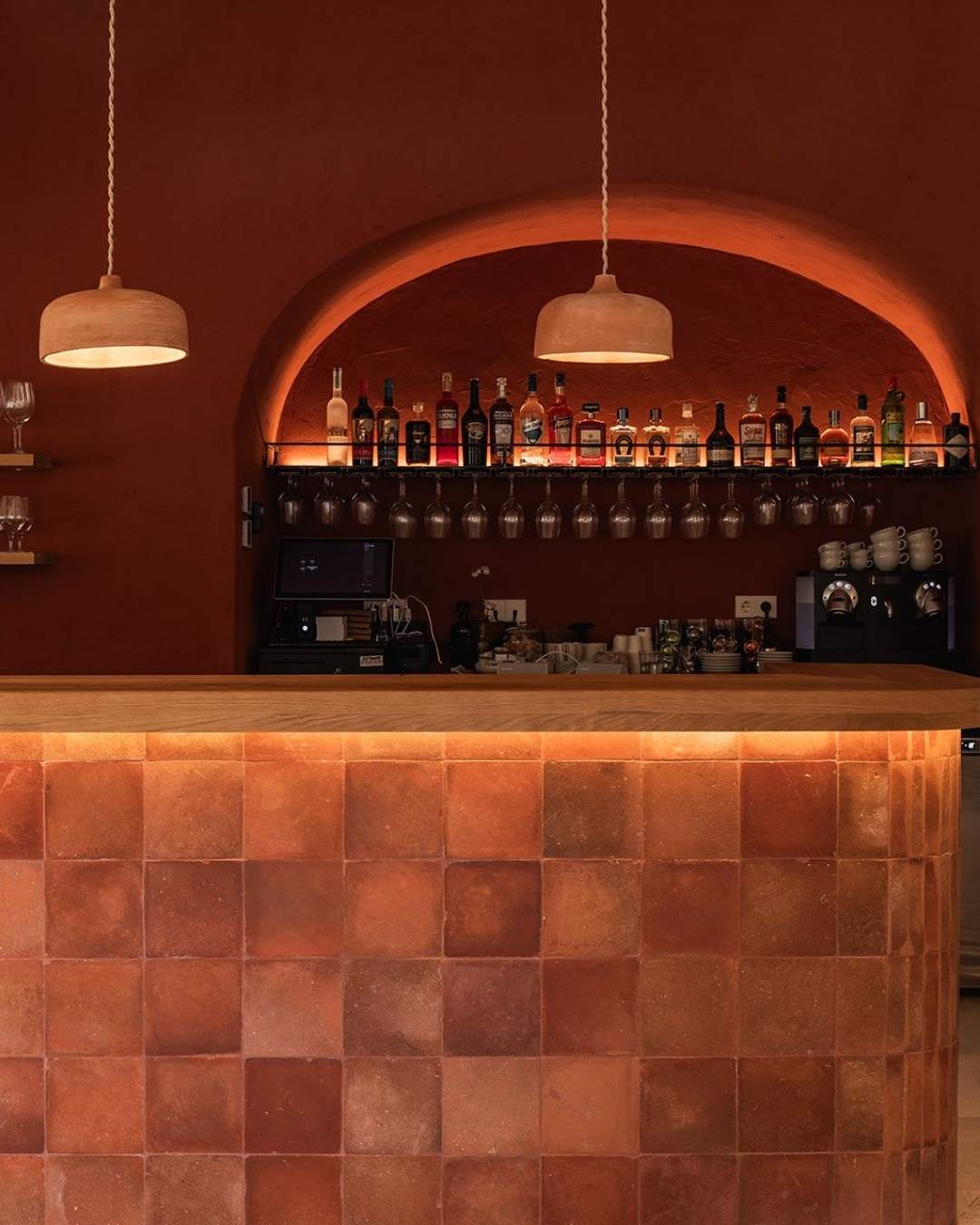 La incorporació de làmpades artesanals de ceràmica aporta calidesa i autenticitat, així com les rajoles antigues al frontal de la barra i algunes parets que reflecteixen la història del lloc. El resultat és un espai que combina tradició, art i confort per a una experiència única.
